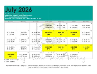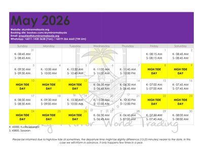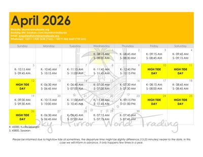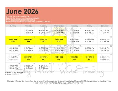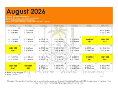 Example: 1 Jan 2026 is 06:45 AM to depart from Kuala Selangor jetty, boat will return back to jetty before 09:15 AM.